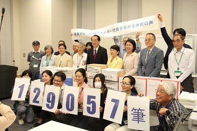 衆議院第2議員会館第1会議室で「原発ゼロ・自然エネルギー社会を求める市民の声ー『エネルギー基本計画署名合同提出院内集会』」は会場にあふれんばかりの参加者の熱気で大いに盛り上がりました。署名を提出した4団体は、原発をなくす全国連絡会、公害・地球環境問題懇談会、eシフト・CAN−Japan・グリーン連合・原水禁、首都圏反原発連合です。