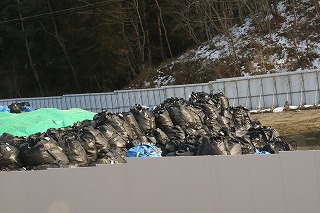 | かつて豊かな稔りをもたらした山木屋のありとあらゆる田んぼに放射能に汚染された土や草を入れたフレコンバッグが積まれていた。 | |||