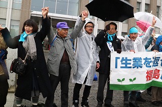 | 群馬原告団長丹治杉江さん、原全連事務局長佐藤三男さん、生業原告団長中島孝さんなど | ||